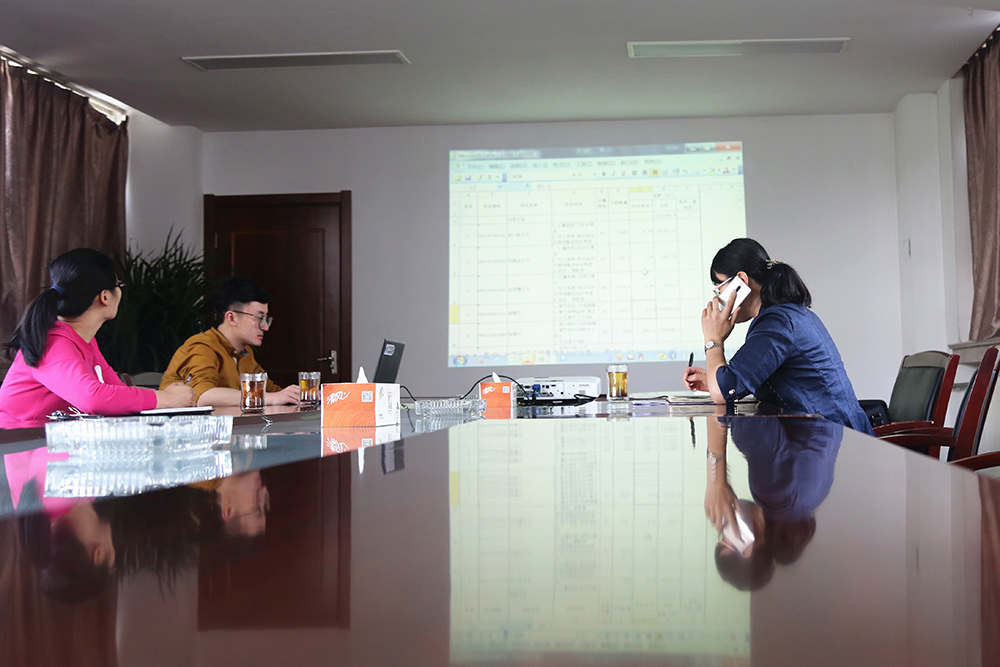 約好一上班9點鐘在辦公室見面采訪,當我們如約到那時,辦公室里已經擠滿了匯報溝通工作的人。9點鐘之后的一個小時,馮繼軍辦公室里的人沒斷過,她的電話鈴聲也幾乎沒停過。