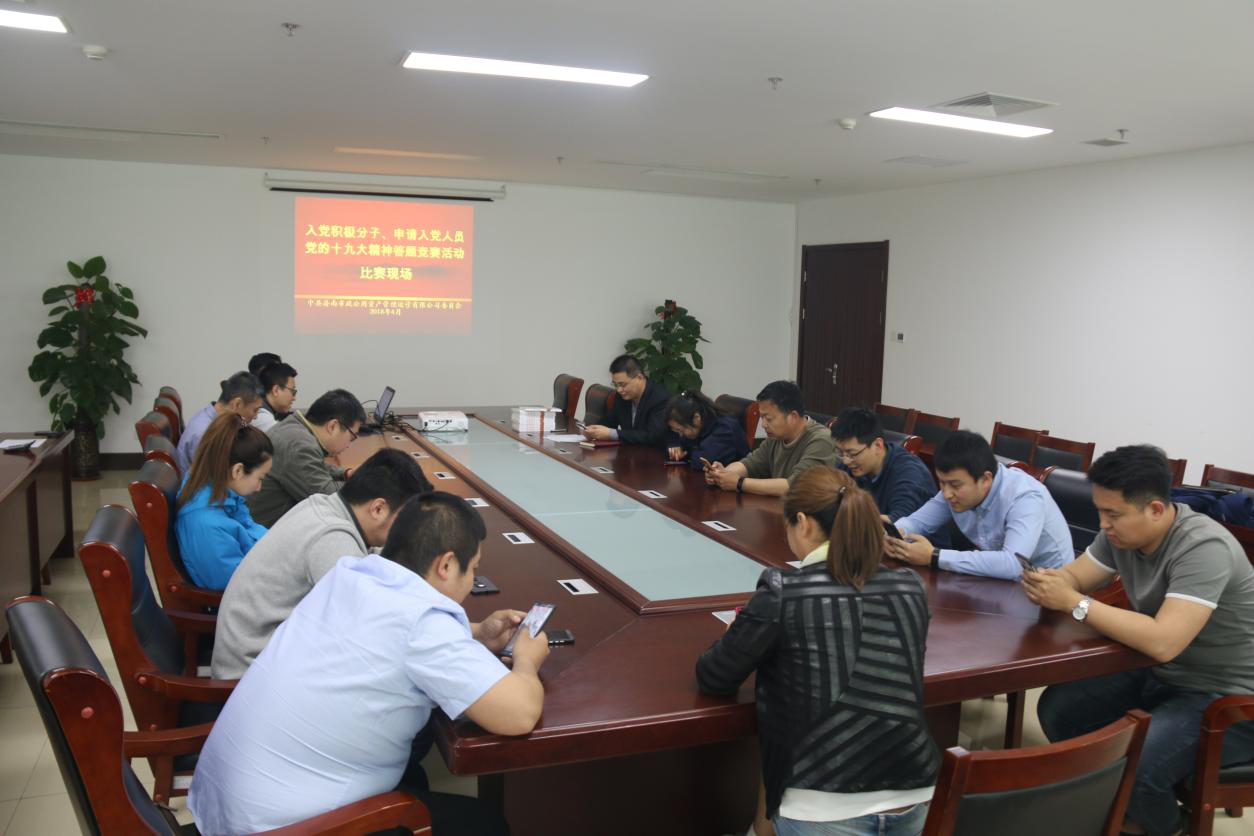 為進(jìn)一步做好公司入黨積極分子、申請(qǐng)入黨人員的培養(yǎng)教育工作,把“燈塔-黨建在線”黨的十九大精神學(xué)習(xí)競(jìng)賽活動(dòng)作為學(xué)習(xí)宣傳貫徹黨的十九大精神的有效載體,積極引導(dǎo)他們提升理論水平和政治素養(yǎng),以賽促學(xué)、以學(xué)促做,4月18日下午,資產(chǎn)運(yùn)營(yíng)公司黨委在1066會(huì)議室組織公司入黨積極分子、申請(qǐng)入黨人員進(jìn)行黨的十九大精神答題競(jìng)賽活動(dòng)。公司黨委委員郭敬華同志作為本次競(jìng)賽裁判長(zhǎng)出席活動(dòng)。
