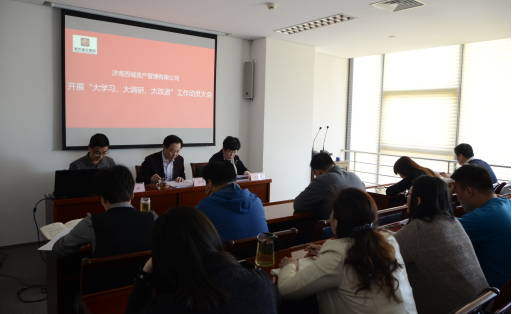 2018年4月9日,濟(jì)南西城資產(chǎn)管理有限公司組織召開“大學(xué)習(xí)、大調(diào)研、大改進(jìn)”工作動員大會。會議由資產(chǎn)公司副總經(jīng)理?xiàng)罾ね局鞒植⑿x《濟(jì)南西城資產(chǎn)管理有限公司開展“大學(xué)習(xí)、大調(diào)研、大改進(jìn)”工作實(shí)施方案》,副總經(jīng)理陳向勤同志宣讀《濟(jì)南城市建設(shè)集團(tuán)創(chuàng)建全國文明單位工作方案》,董事長兼總經(jīng)理顏丙根同志就以上工作作動員講話。