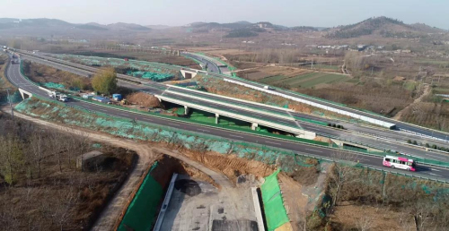 濟廣高速大橋位于平陰縣東橋口村南,與濟廣高速交角47°。本項目下穿濟廣高速,新建行車道利用中間兩孔通行。首先建設了濟廣高速保通便道路基及便道橋梁,在施工同時,確保濟廣高速正常通行。濟廣高速大橋施工完畢后,重新封閉濟廣高速公路緊急停車帶,挖除保通便道,恢復護欄、標線等交安設施及路基邊坡防護,同時完成保通便橋的拆除,對便道占地恢復原狀。