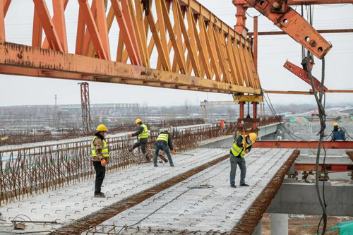 春節(jié)期間,張?zhí)嵊聸](méi)有休假,每天都要到工地一線,隨時(shí)掌握和了解施工進(jìn)展,協(xié)調(diào)解決施工過(guò)程中出現(xiàn)的各種問(wèn)題。在嚴(yán)格落實(shí)各項(xiàng)防疫措施的前提下,青年突擊隊(duì)加班加點(diǎn)干出一個(gè)春節(jié)“大禮包”:架設(shè)箱梁8跨32片,順利跨越青銀高速,實(shí)現(xiàn)關(guān)鍵環(huán)節(jié)的高效突破!
