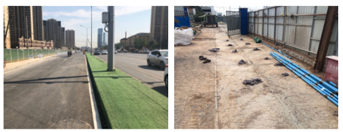 為避免施工對現(xiàn)狀交通及周邊居民生活產(chǎn)生過大影響,項目部通過認真研究,在早晚高峰時期不進行道路上的施工項目,同時在22時至次日6時之間不進行大型機械的地面作業(yè),避免噪聲影響居民休息。“通行道路鋪設鋼板對溝槽進行覆蓋,改進原工藝,先銑刨路面,將鋼板降至與瀝青齊平,保證市民行車舒適度,降低噪音,隧道斜井全部采用防塵防噪隔離棚全部棚蓋,將對周邊居民的影響降到最低”,城建集團一分公司項目施工負責人吳建亮說道。