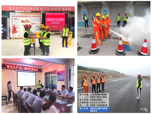 項目涉及橋梁工程、大型結構物、石方爆破、隧道工程、構件的加工與運輸安裝等,安全管理難度較大,金曰公司項目部從“綜合治理、責任落實、應急演練、科技結合”四方面入手,以更嚴格的要求,更有效的措施,更高壓的態勢,更嚴明的紀律,堅守生產紅線和底線思維,夯實安全生產基礎。金宇公司項目部通過建立嚴格的安全教育制度,做到施工人員入場教育、施工前安全技術交底、每周按班組安全教育、每日召開施工班前會,提高施工人員安全意識,筑牢施工安全防線。其中,金曰公司參建的SG-1標段作為濟南市國省道唯一的工程項目參加了省交通運輸廳“2019年度平安示范工地”評選活動。