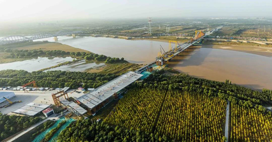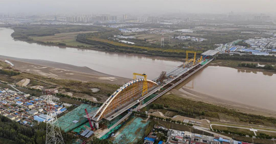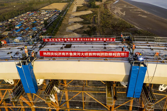 繼濟樂高速南延線順利通車、鳳凰黃河大橋主橋合龍后,由濟南城市建設集團負責建設管理的跨黃通道工程又迎來重要節點,經過90天的連續作業,10月21日凌晨,齊魯黃河大橋首跨拱肋順利合龍。隨著最后一節段拱肋的精準安裝到位,項目建設再次取得重要節點性進展。