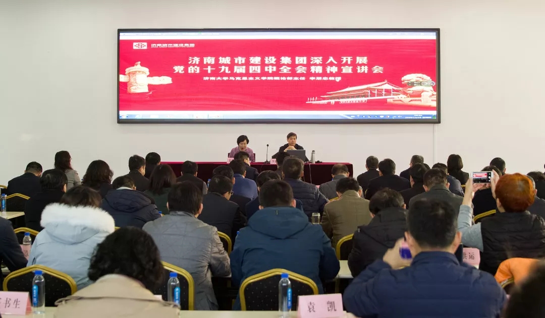 12月19日上午,集團(tuán)舉辦十九屆四中全會精神宣講報(bào)告會,邀請省委組織部名師送教專家?guī)斐蓡T、濟(jì)南大學(xué)李朋忠教授作題為《認(rèn)真學(xué)習(xí)十九屆四中全會精神深入貫徹習(xí)近平新時代中國特色社會主義思想》專題輔導(dǎo)報(bào)告。集團(tuán)領(lǐng)導(dǎo)班子成員、集團(tuán)總部中層干部、直屬子公司負(fù)責(zé)人參加學(xué)習(xí)。報(bào)告會由集團(tuán)黨委副書記姜秀杰主持。
