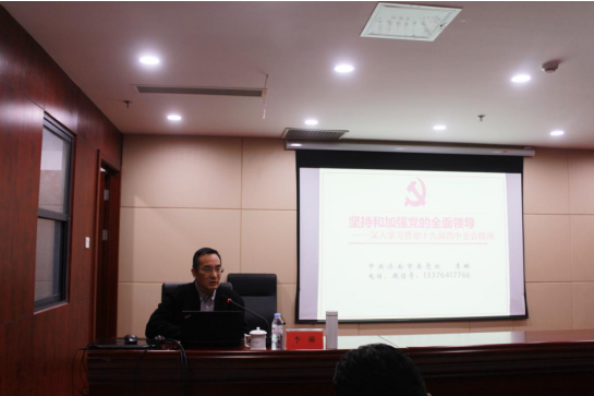李琳教授就《堅持和加強黨的全面領導---深入學習貫徹黨的十九屆四中全會精神》進行了系統闡述和深入解讀。從理論依據、現實依據方面,為我們解讀了堅持和加強黨的全面領導的必然性。通過如何處理好四種關系解讀了堅持和加強黨的全面領導的豐富內涵,解讀了中國共產黨長期執政的合法性。