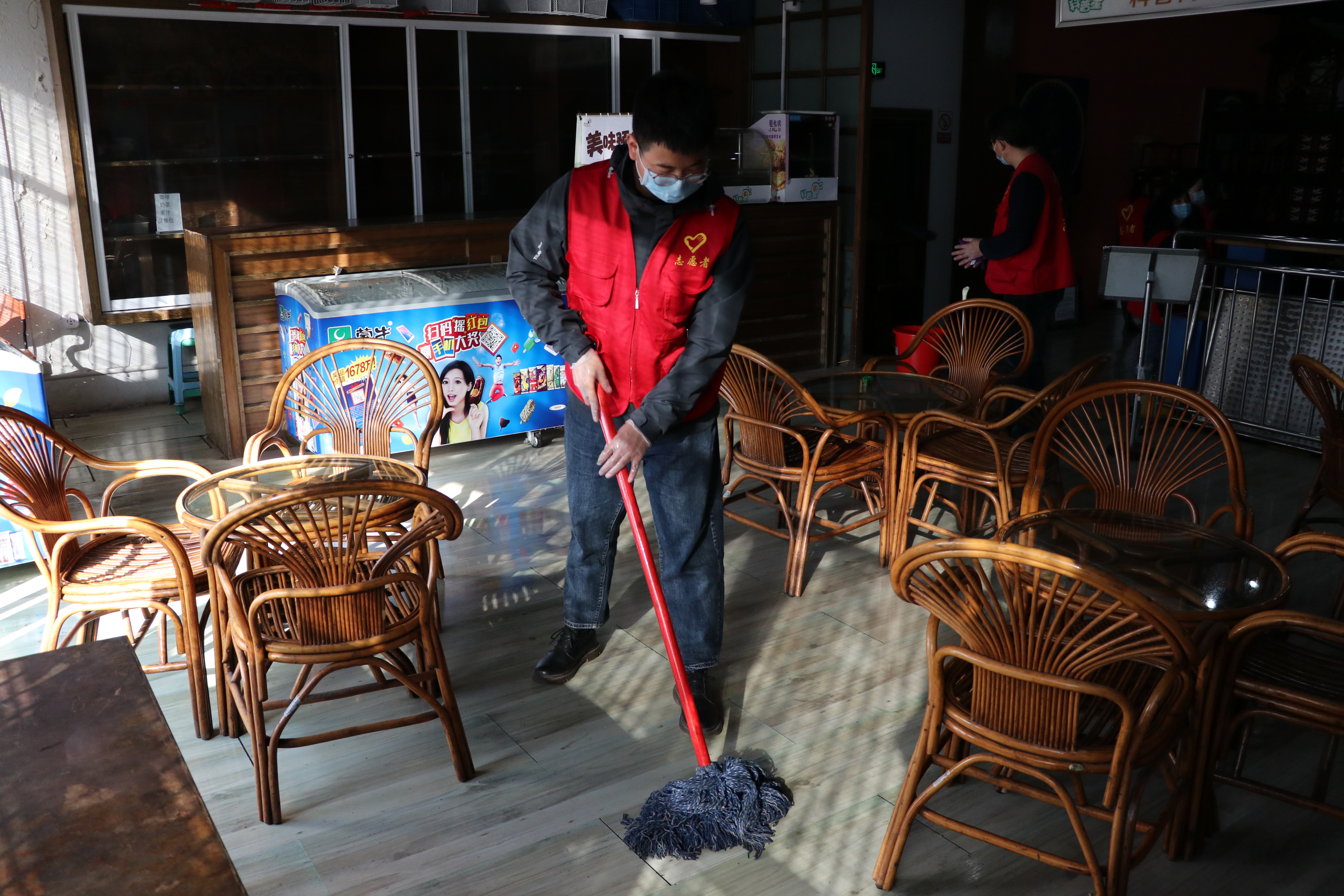 在濟南市科技館中,志愿者們向游客開展疫情防控宣傳工作、便民服務,并集中人員打掃展廳衛生。濟南市美術館正逢國際雙年展,志愿者們被有序安排在一至四樓的各個展廳引導巡視,主動開展書吧整理,衛生清理工作。志愿者們在翡翠社區積極開展社區衛生打掃、環境整理、助民便民服務,志愿者代表還去看望了社區中家有腦癱青年的困難家庭,送去關懷及慰問品。