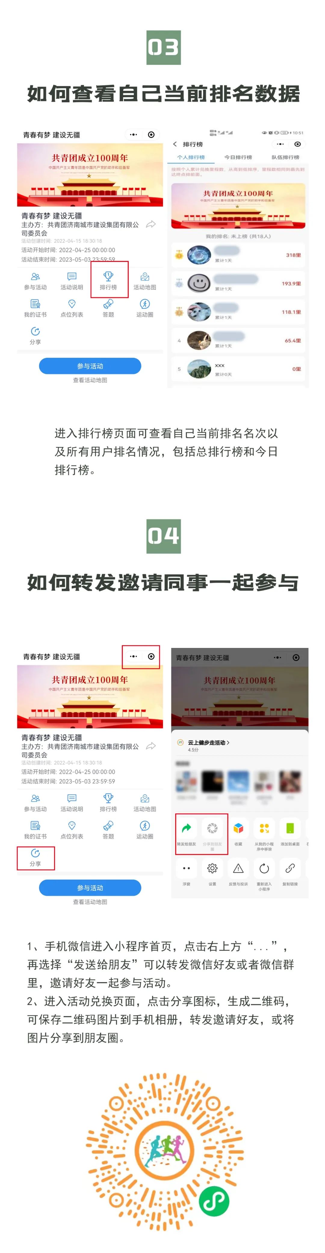 為慶祝建團100周年,開展好“百年崢嶸、初心不改、青春與共、砥礪前行”主題教育實踐活動,展現集團自成立以來的光輝歷程,賡續集團紅色精神、凝聚集團奮進力量,不斷增強廣大職工的身體素質和健康水平,不斷提高集團的凝聚力和向心力。由共青團濟南城市建設集團有限公司委員會主辦,共青團濟南金曰公路工程有限公司委員會、濟南新城文化傳媒有限公司承辦的“青春有夢 建設無疆”——職工線上健步走活動將于今晚零點正式上線,活動時間為2022年4月25日——5月3日(共十天)。