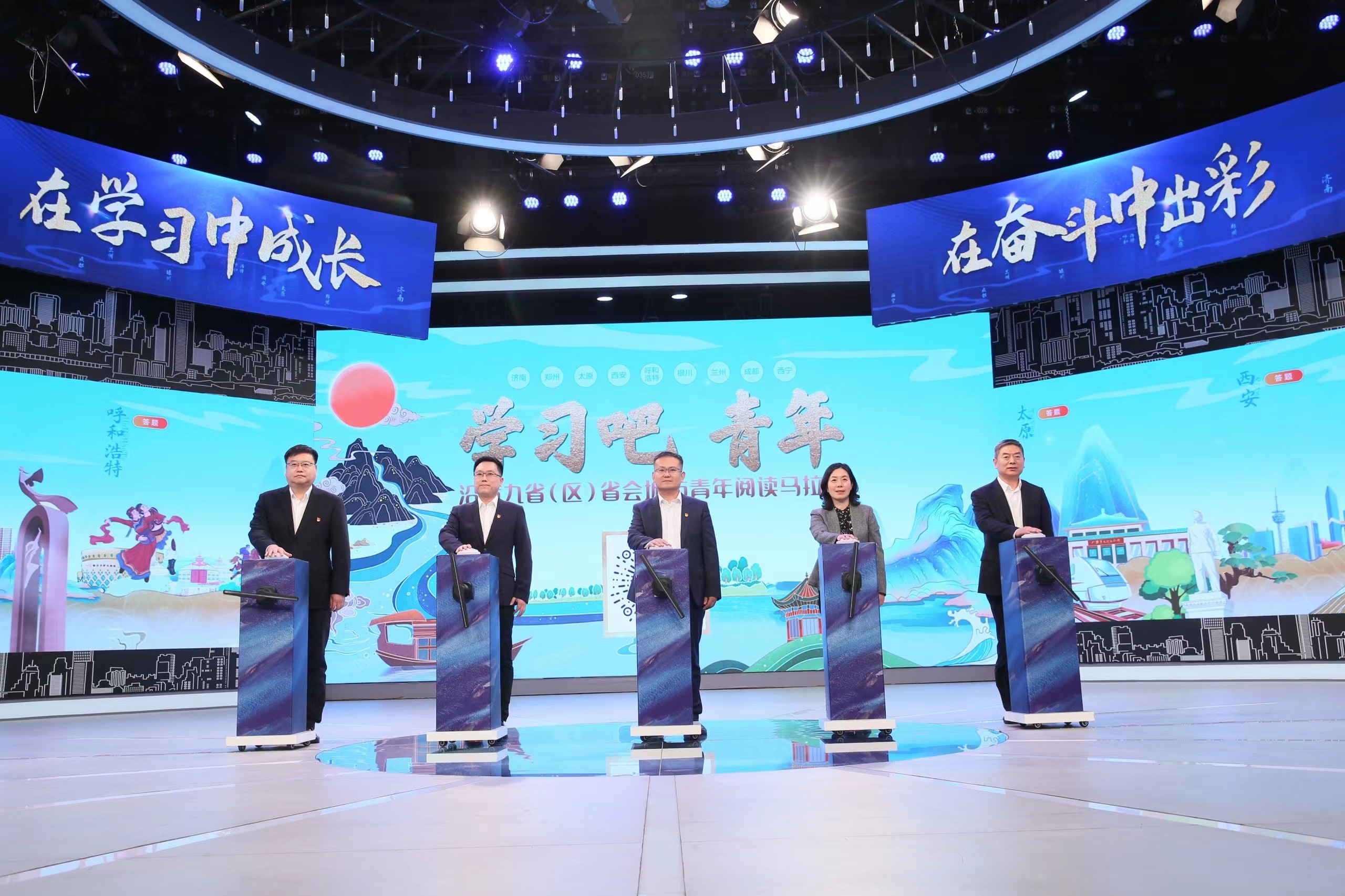 為深入學(xué)習(xí)宣傳貫徹落實(shí)黨的二十大精神和習(xí)近平總書記關(guān)于黃河流域生態(tài)保護(hù)和高質(zhì)量發(fā)展重要講話精神,弘揚(yáng)“黃河文化”,講好“黃河故事”,11月14日,“學(xué)習(xí)吧,青年”沿黃九?。▍^(qū))省會(huì)城市青年閱讀馬拉松暨泉城年輕干部閱讀馬拉松挑戰(zhàn)賽啟動(dòng)儀式在濟(jì)南廣播電視臺(tái)演播大廳舉行。本次活動(dòng)由中共濟(jì)南市委組織部、中共濟(jì)南市委宣傳部、共青團(tuán)濟(jì)南市委、濟(jì)南廣播電視臺(tái)、濟(jì)南城市建設(shè)集團(tuán)有限公司共同主辦,沿黃九?。▍^(qū))省會(huì)城市團(tuán)委、沿黃九?。▍^(qū))省會(huì)城市廣播電視臺(tái)聯(lián)動(dòng)支持。