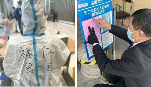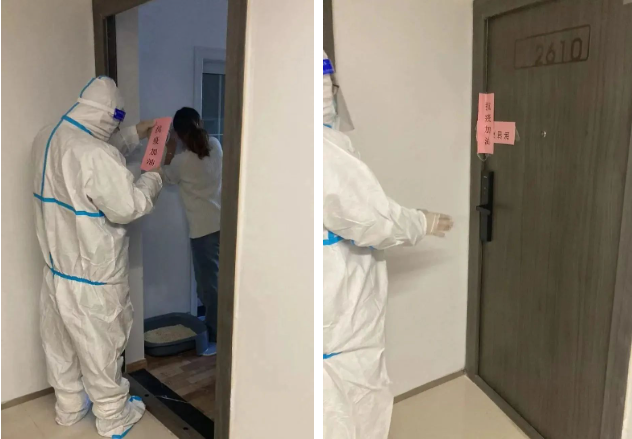 當(dāng)柏然公館項目收到業(yè)主需要居家隔離的通知,福仁服務(wù)人員身穿防護服,上門耐心溝通安撫,“遇到事情需要代辦的,東西需要代買的,隨時打電話找我們!我們24小時為你開機!”