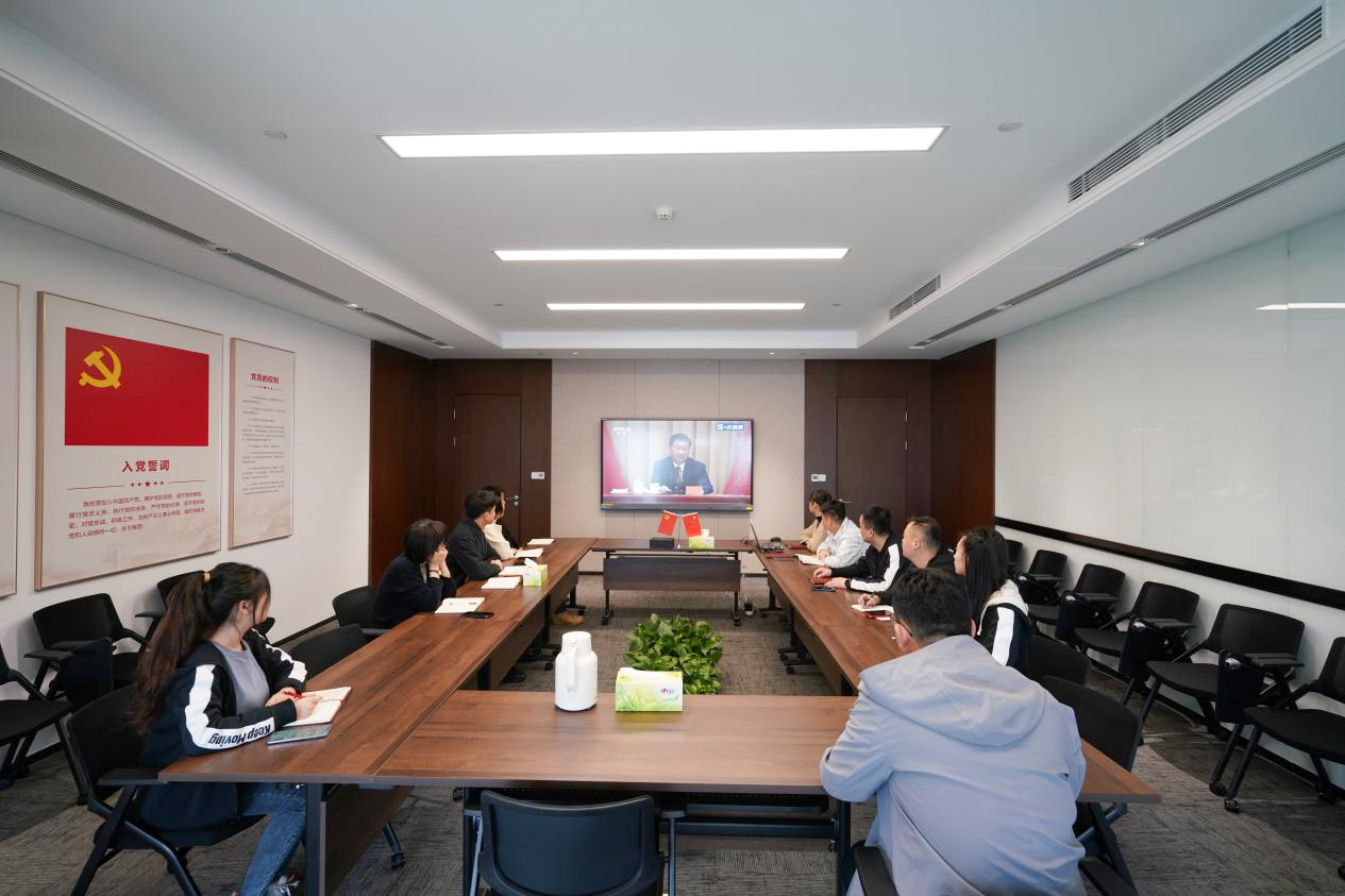 濟南建設集團投資有限公司團支部組織在崗團員青年、團干部集中觀看直播。