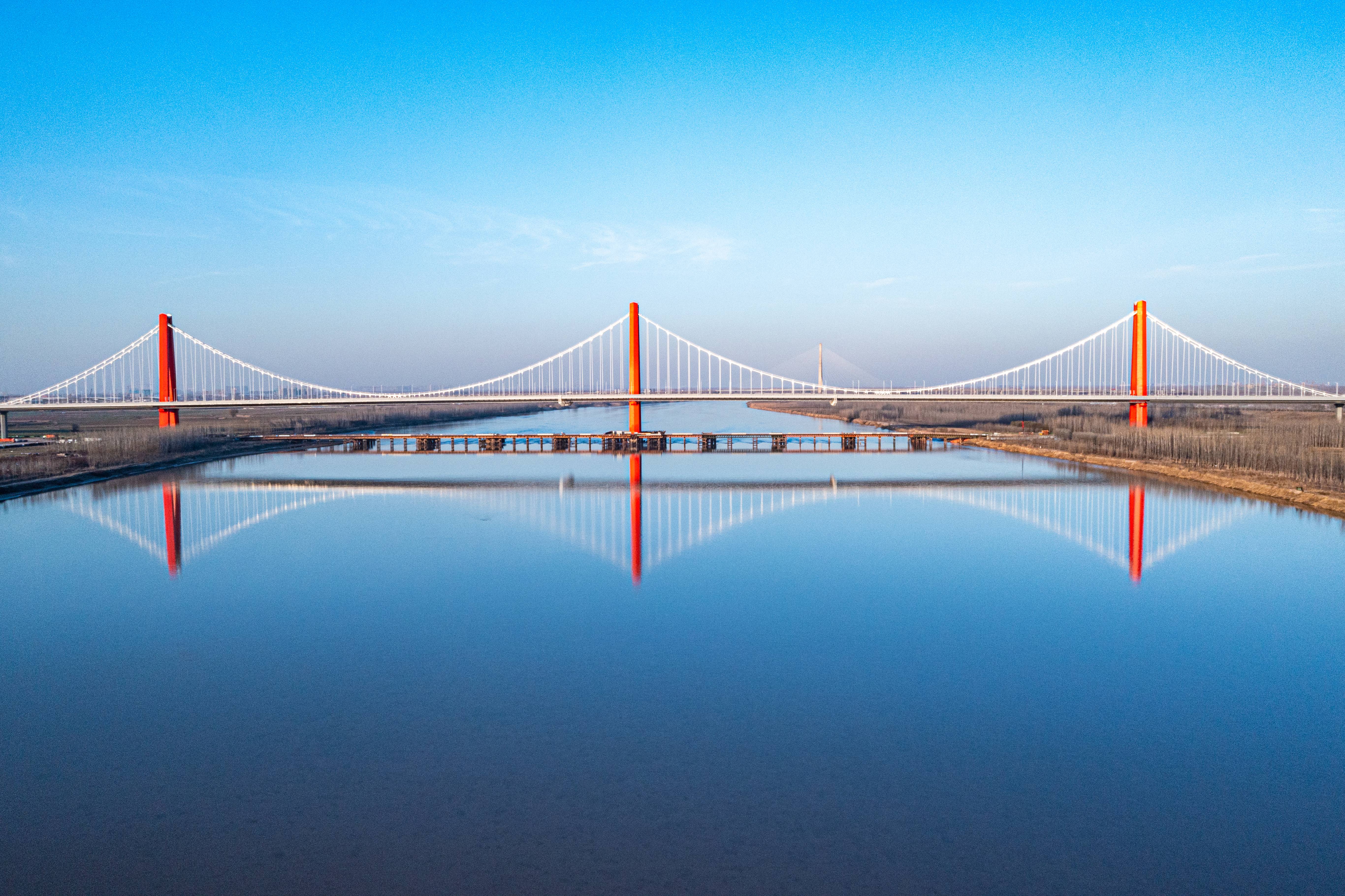濟南黃河鳳凰大橋是聯通濟南市主城區和新舊動能轉換起步區的重要紐帶,是我市推進“北起”擁河發展戰略的重要組成部分,更是貫徹落實國家黃河生態保護和高質量發展、國家新舊動能轉換起步區及省委、省政府“強省會戰略”三大戰略部署的具體展現。該橋自2018年9月開工建設,2021年9月交工驗收,2022年1月18日通車運行,是黃河上最大的三塔自錨式懸索橋,同時也是黃河上最大的鋼結構橋。在工程建設期間,各參建單位抽調精兵強將,組建了優秀的項目團隊,不斷優化施工方案,加強精細化管理,努力克服新冠疫情等不利影響,全面攻克了工程鋼結構體量大(大橋總用鋼量高達11.4萬噸,相當于2.7個鳥巢,三個鋼塔1.4萬噸的用鋼量就等于兩座埃菲爾鐵塔)、不具備水運條件、水上大型設備無法使用,超長、超重、大懸臂、長距離、曲線鋼箱梁頂推施工等各類難點要點,安全、優質、高效地完成了工程建設任務,創造了多項“世界之最”,是名副其實的“超級工程”,成為了國內先例,為在黃河上建設超大型橋梁積累了大量的寶貴經驗。