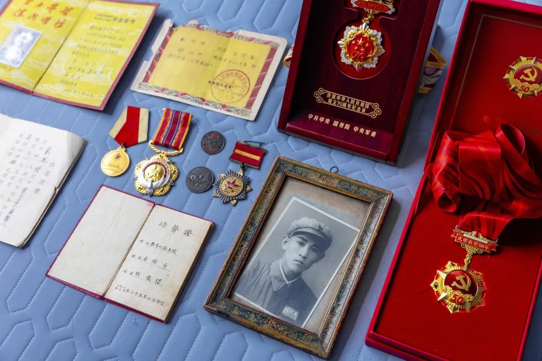 采訪過程中,已是96歲高齡的戴老對許多事情已經(jīng)記憶模糊,但對革命生涯的起點(diǎn)依然記憶猶新,“我是老百姓的孩子,年輕時(shí)當(dāng)了兵,那時(shí)候啥也不懂,沒有文化,多虧了黨把我培養(yǎng)了起來,掃了盲、入了黨,我感恩共產(chǎn)黨,一輩子跟黨走”,戴老說道。對于多年榮獲積累下來的勛章,戴老依然是如數(shù)家珍、視為至寶,“我們家是革命家庭,這些勛章不僅是我一個(gè)人的紀(jì)念,更是祖祖輩輩的紀(jì)念,是我們家的‘傳家寶’,要一代一代傳承下去”,戴老說道。
