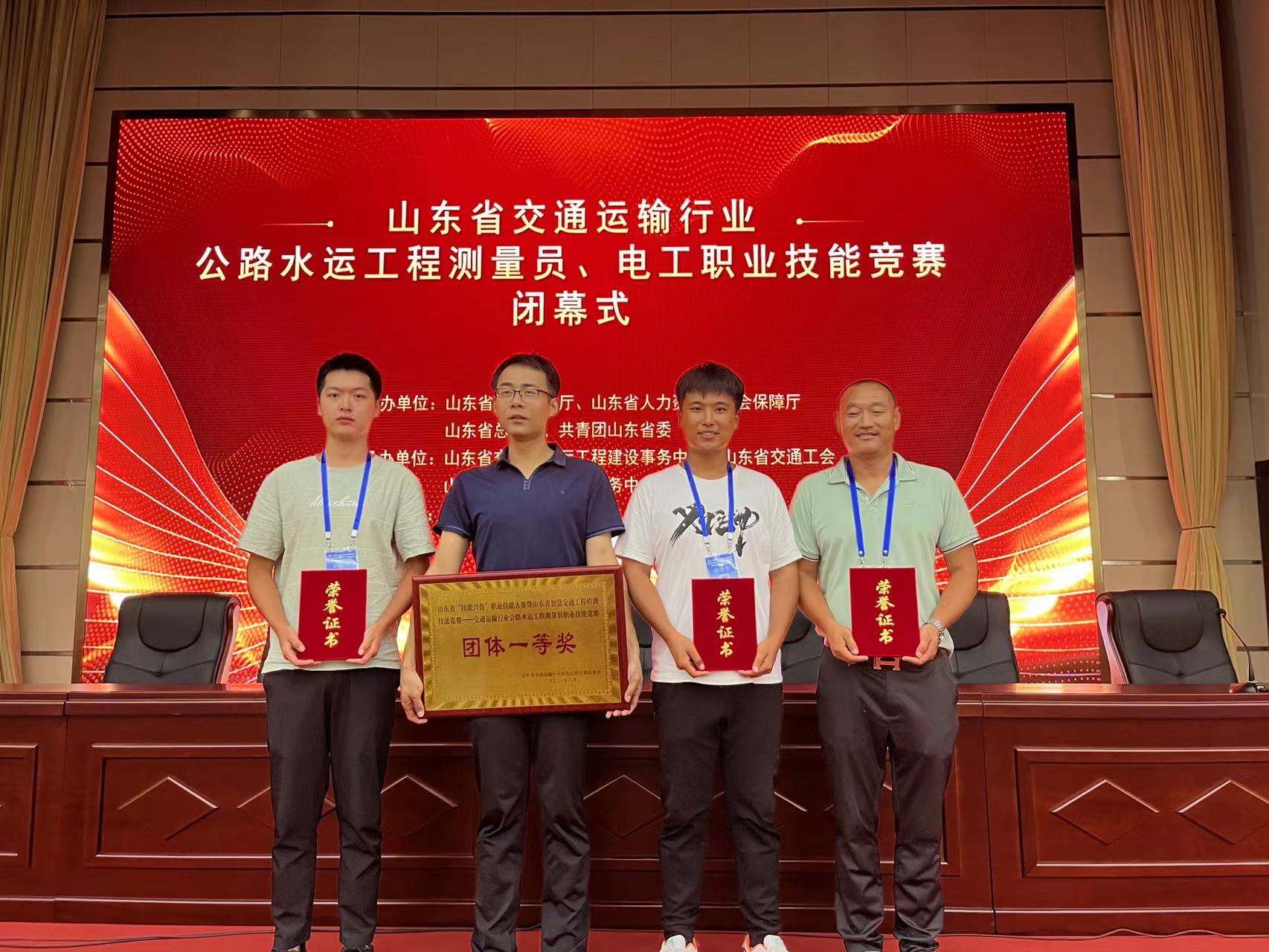 8月28日,金朝公司員工趙凱同志榮獲省“技能興魯”職業技能大賽暨山東省智慧交通工程檢測技能競賽——交通運輸行業公路水運工程測量員技能競賽決賽“個人一等獎”,他所屬的濟南市團隊獲得“團體一等獎”榮譽稱號。
