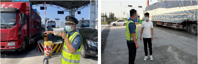 堅決落實“十一”假期高峰時段對危化品、超限超載車輛等限行工作,外勤為司乘人員耐心解釋并普及相關政策。