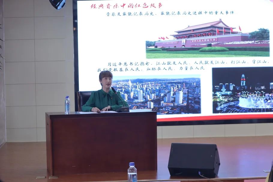 同時,本次學習還特別邀請到濟南市青少年宮團隊帶來音樂黨課《經(jīng)典音樂中的紅色故事》。課程用“理論授課+音樂作品展演”的形式,以時間軸串聯(lián)講解經(jīng)典音樂著作。黨課分《送別》與震驚中外的五四運動、《國民革命歌》與轟轟烈烈的大革命、《松花江上》與全民族抗戰(zhàn)的開始、《軍民大生產(chǎn)》與根據(jù)地的艱苦斗爭、《你是燈塔》與新中國的成立、《唱支山歌給黨聽》與社會主義建設的蓬勃開展、《春天的故事》與改革開放等七個部分,一首首耳熟能詳?shù)囊魳纷髌芬元毘?、合唱、二胡獨奏、大提琴演奏、舞蹈等藝術形式重新演繹,歷史畫卷伴隨音樂徐徐展開,在浸潤式教育中傳承紅色基因,引導學員感受藝術魅力、匯聚精神力量、激發(fā)前行動力。