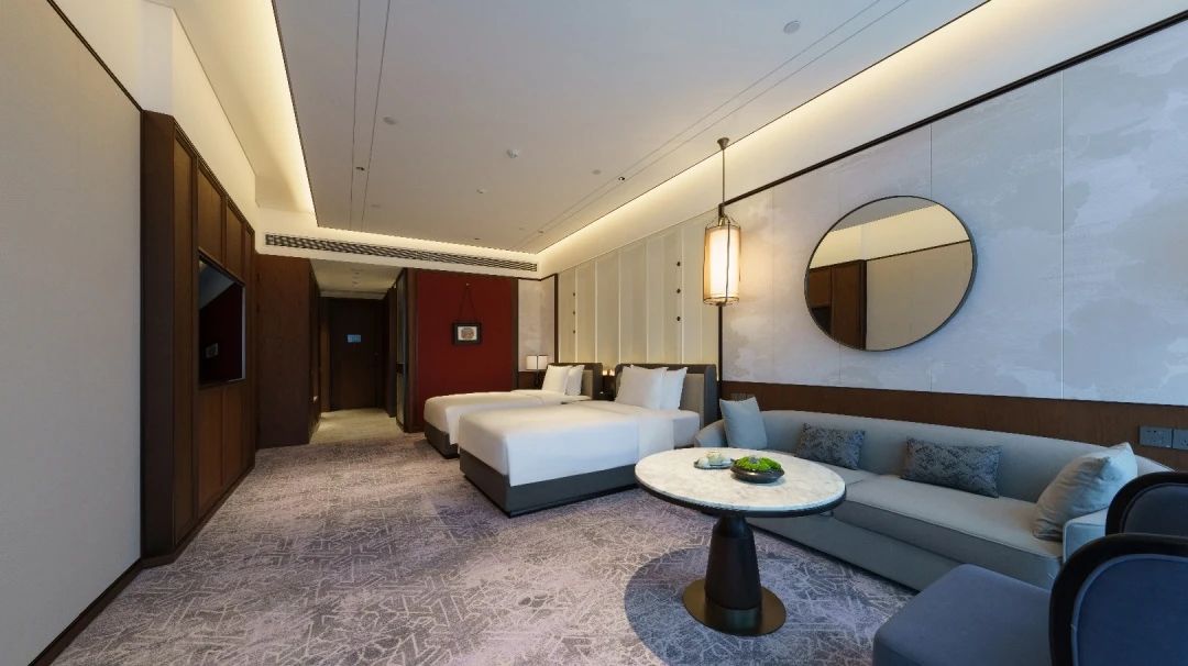 酒店以宋式美學為設計特色,酒店大堂的“云起·鵲華秋色”,餐飲區的“云深·華屋滿朋”,宴會廳的“云上·宴賓會友”,客房的“云歸·曉鏡畫屏”全面詮釋了宋式美學的匠心獨運,將精致和典雅發揮得淋漓盡致。“中式、簡約、現代、綠色”是酒店的四大核心理念,可以讓來賓感受到濃厚的中國傳統文化及細致入微、始終如一的待客之道。