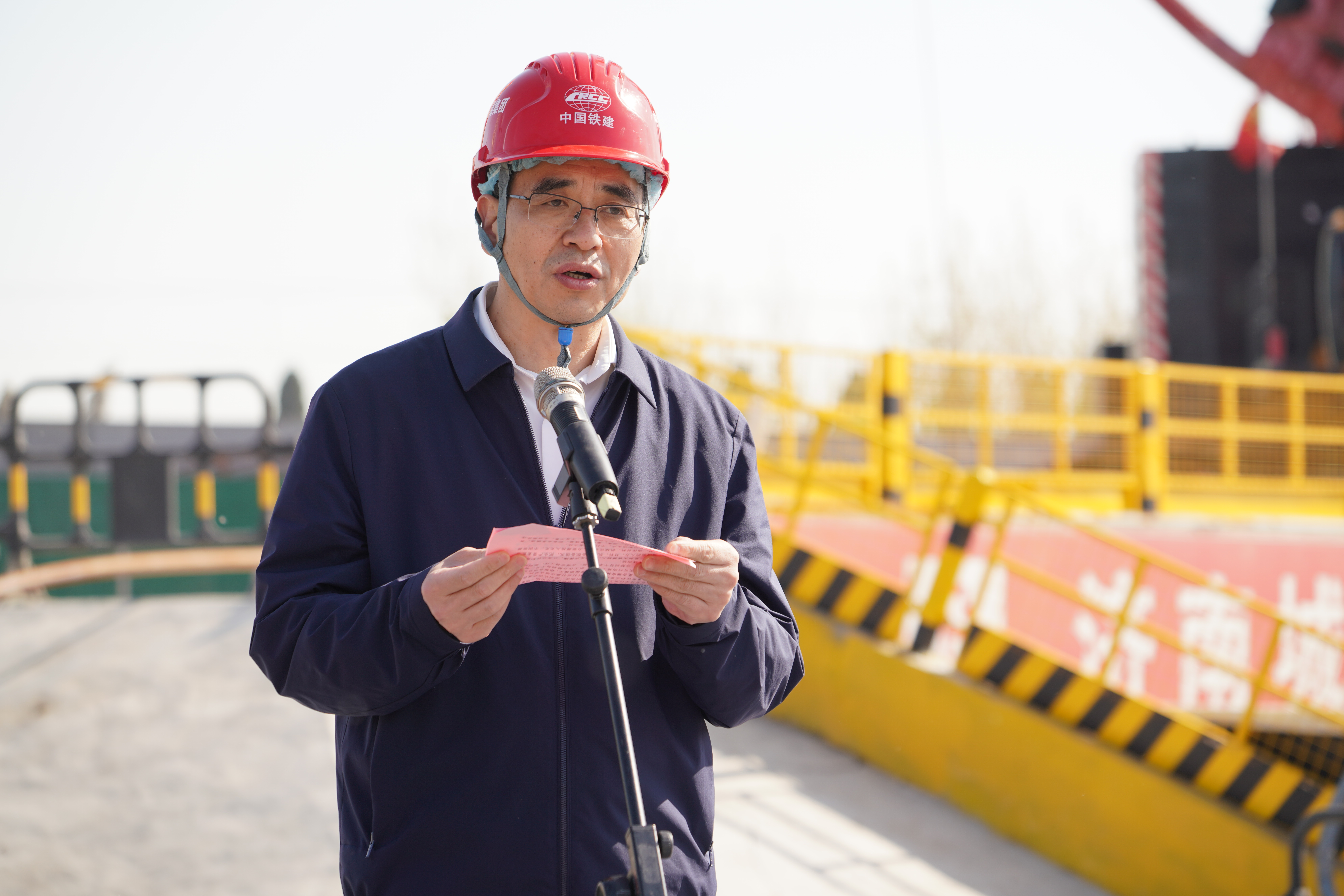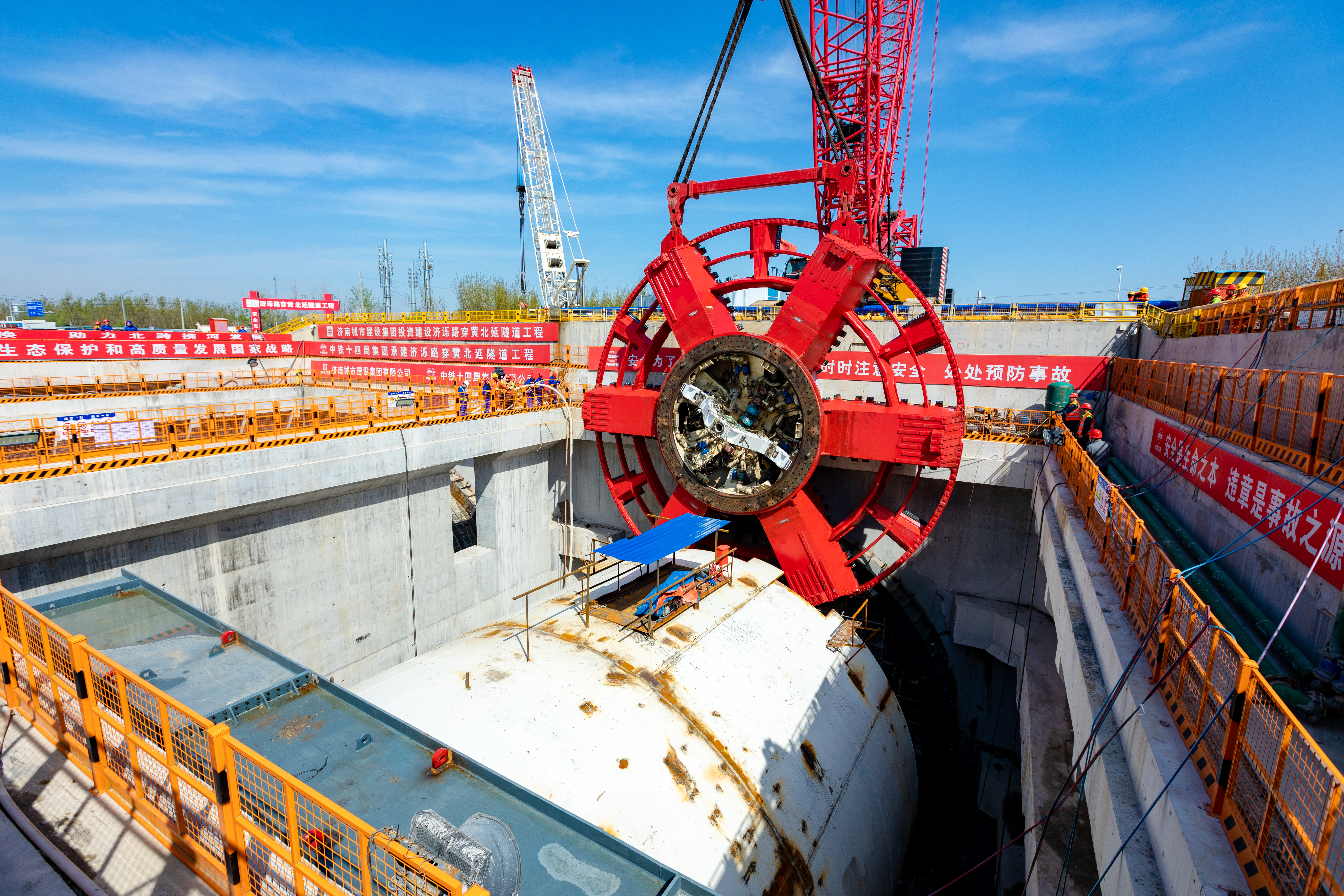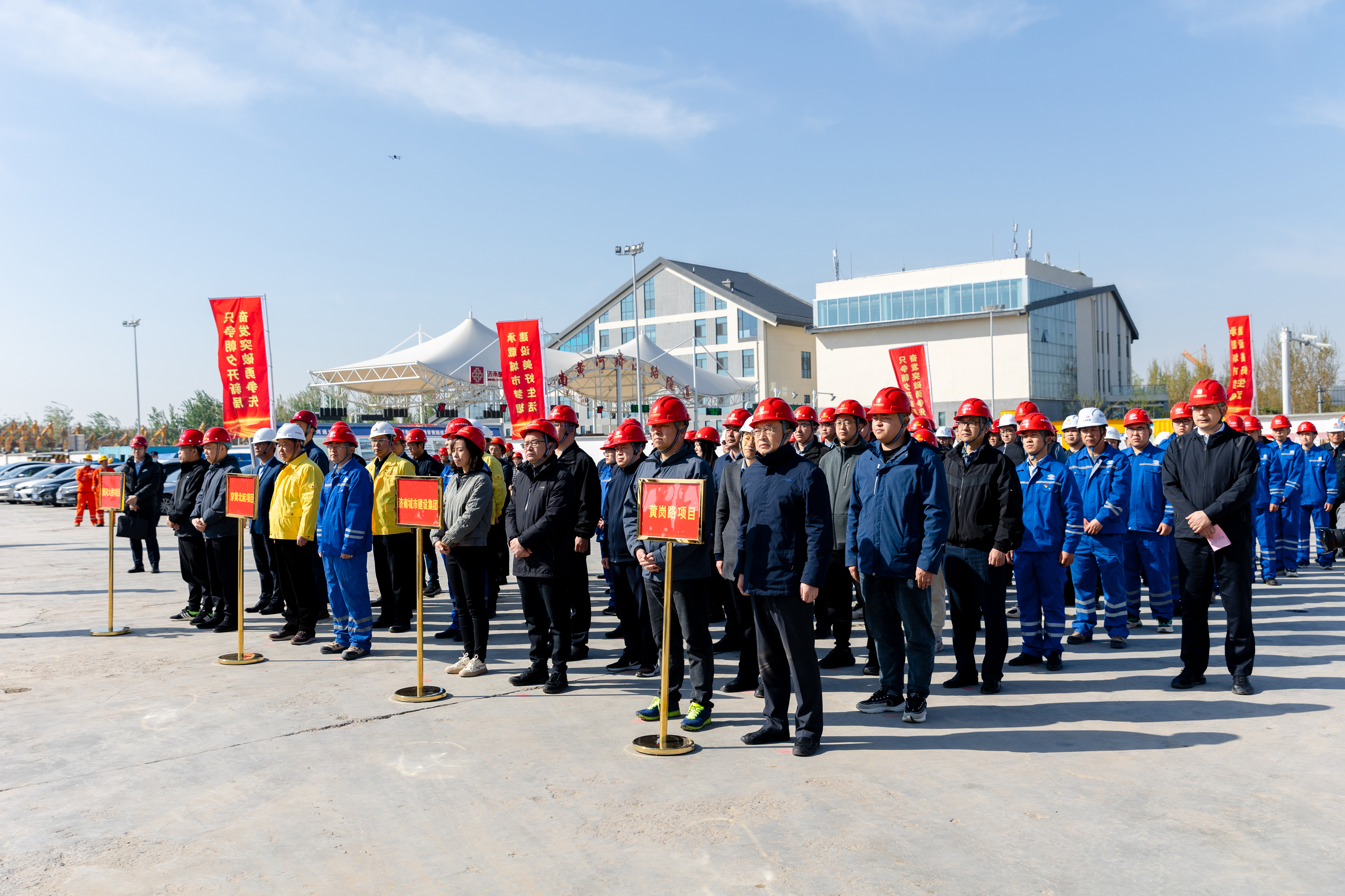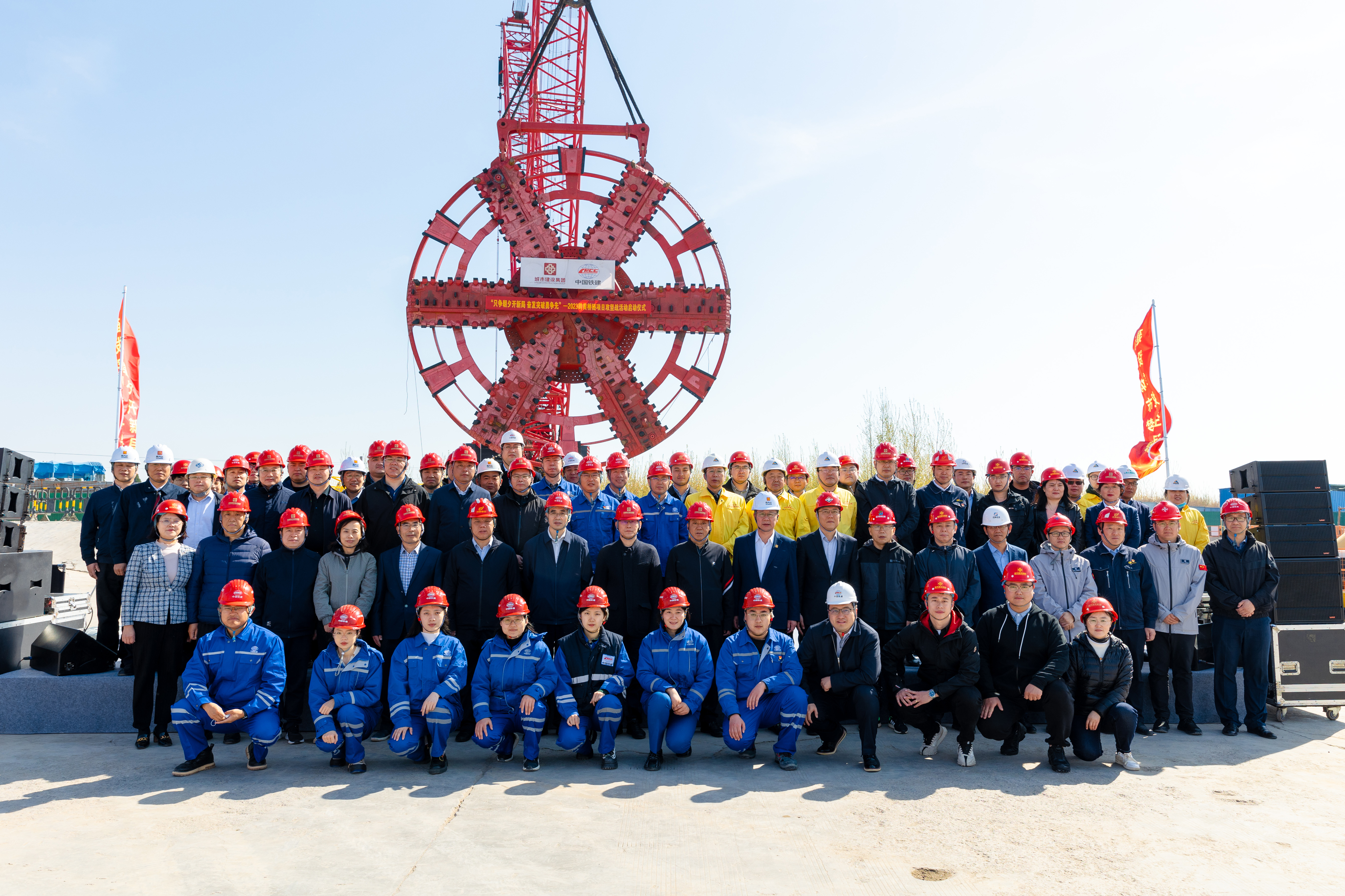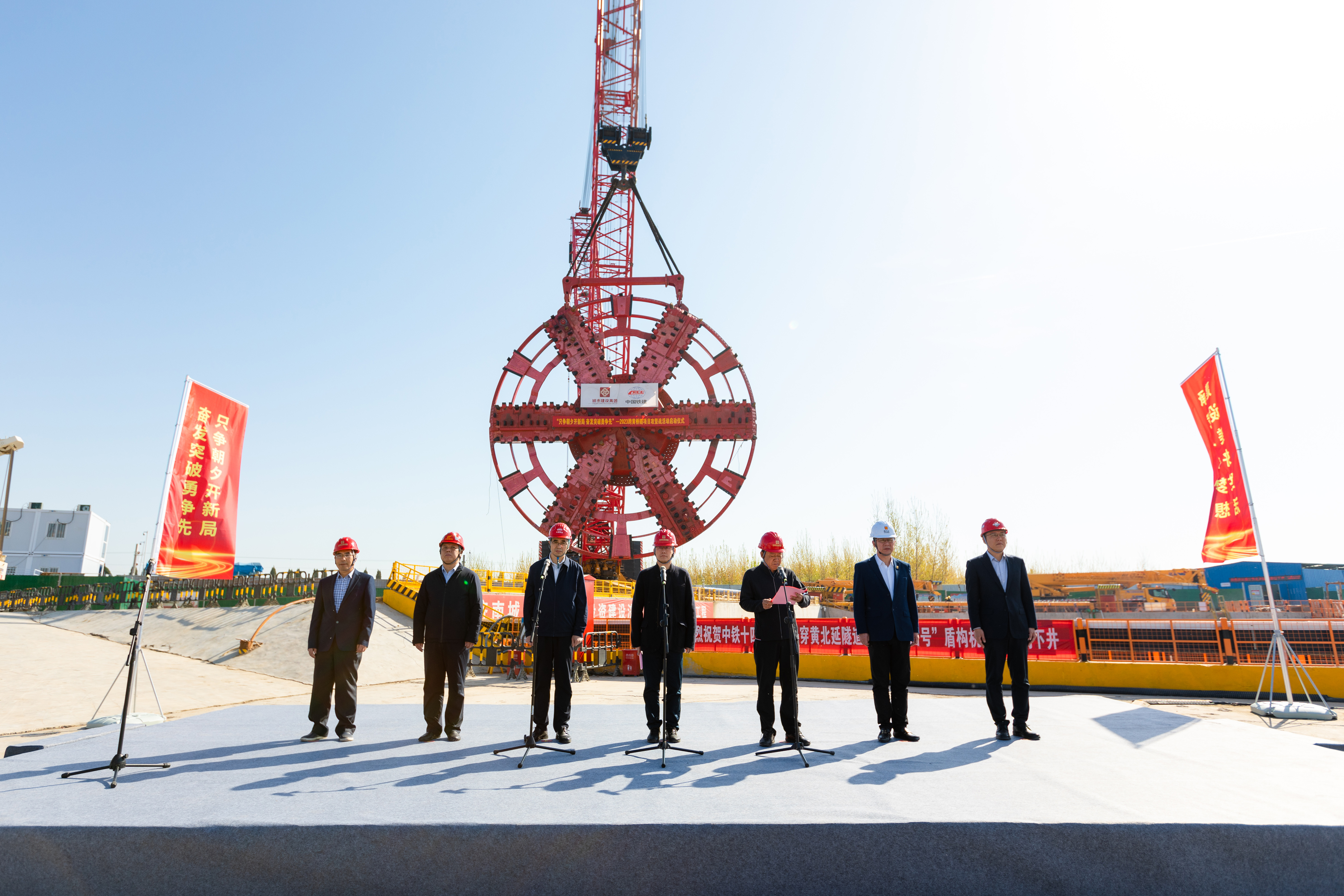 4月8日,建設集團在濟濼路穿黃北延隧道盾構始發井現場舉行“只爭朝夕開新局,奮發突破勇爭先”2023年跨黃橋隧項目攻堅戰活動啟動儀式。