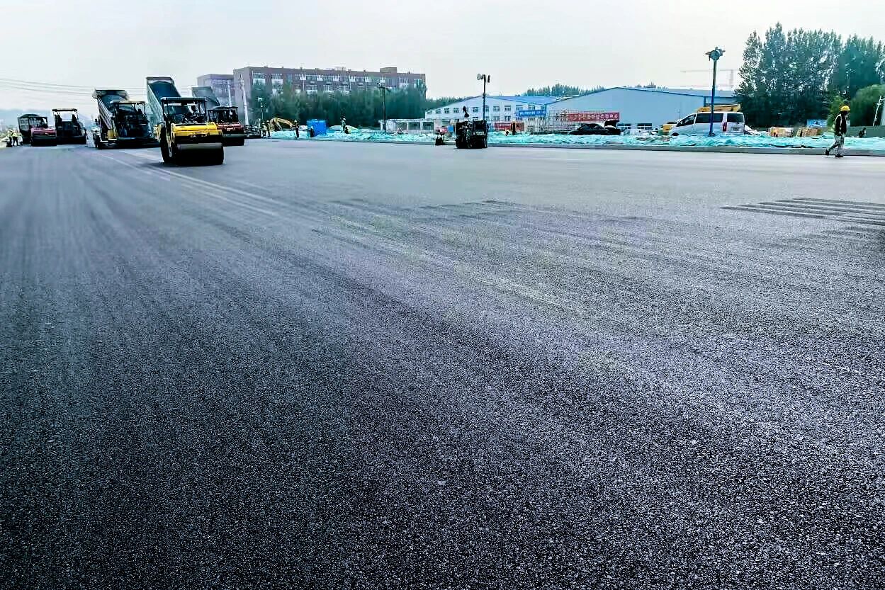 起步區黃河大道一期二標項目瀝青中面層完成攤鋪