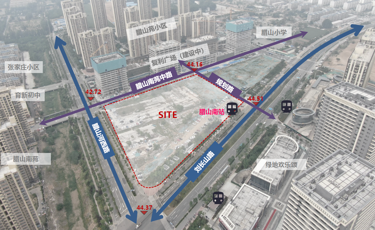 項目位于濟南槐蔭區臘山片區劉長山路以北、臘山河西路以東,片區屬于南城發展區,距濟南西站約6. 3km,距離濟南站約9.4km。項目定位為打造以休閑、娛樂、餐飲為主的一站式綜合商業。