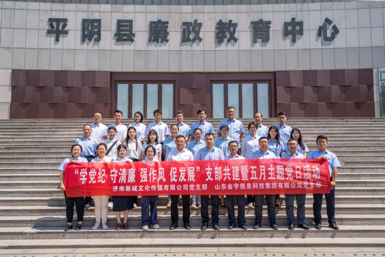為進一步加強現(xiàn)場警示教育,推動黨紀(jì)學(xué)習(xí)教育走深走實,5月28日,山東金宇信息科技集團黨支部與濟南新城文化傳媒公司黨支部組織黨員赴平陰縣廉政教育中心,開展“學(xué)黨紀(jì) 守清廉 強作風(fēng) 促發(fā)展”支部共建暨五月主題黨日活動。