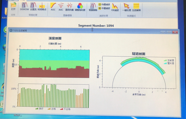將彈性波智能檢測(cè)系統(tǒng)安裝在盾構(gòu)機(jī)上,每環(huán)掘進(jìn)工序完成后開啟檢測(cè)設(shè)備,項(xiàng)目技術(shù)人員通過掃描管片獲得壁后注漿效果圖,分析彈性波波形判斷注漿密實(shí)度,根據(jù)注漿密實(shí)度對(duì)注漿工序?qū)崟r(shí)做出調(diào)整。