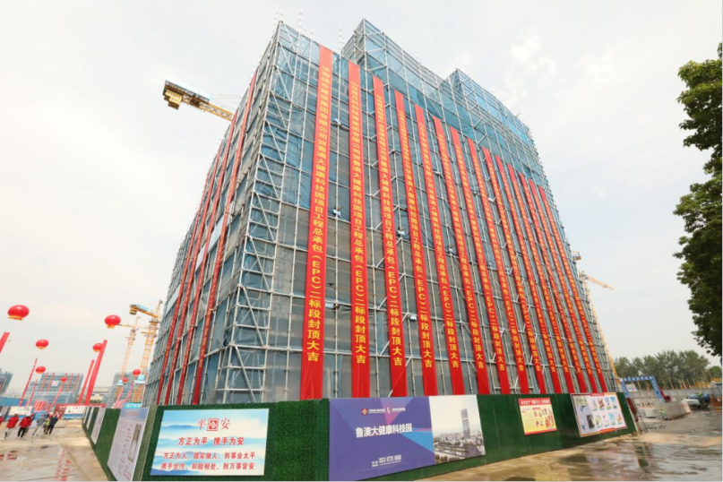 魯澳大健康科技園是山東省與澳門在中醫(yī)藥領(lǐng)域合作的核心平臺,由濟(jì)南市、山東中醫(yī)藥大學(xué)、澳門科技大學(xué)三方聯(lián)手打造。項(xiàng)目位于長清區(qū)大學(xué)路,總建筑面積19.6萬㎡,是建設(shè)集團(tuán)產(chǎn)業(yè)園經(jīng)濟(jì)產(chǎn)業(yè)鏈?zhǔn)着?xiàng)目,由所屬山東貫月科創(chuàng)投資集團(tuán)投資建設(shè)。項(xiàng)目共分為兩個(gè)標(biāo)段,當(dāng)前封頂?shù)膶儆诙?biāo)段。
